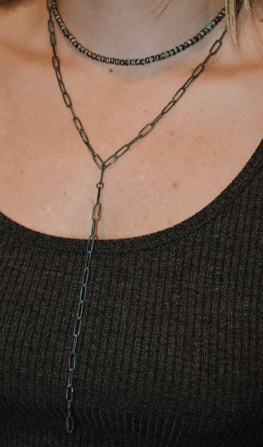 Aged Turquoise Layered Lariat Necklace